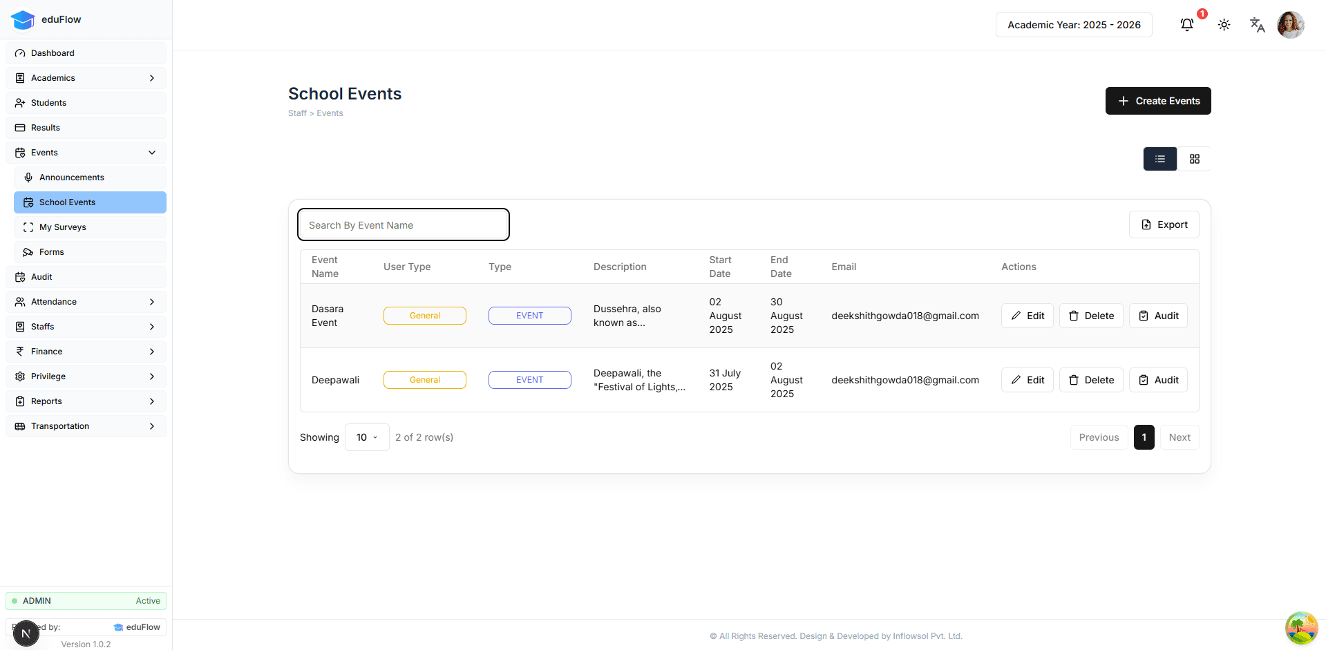 Announce and manage school events with ease. From Sports Day to Parent-Teacher Meetings — everything tracked.