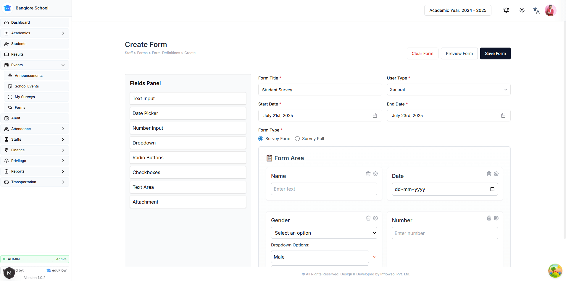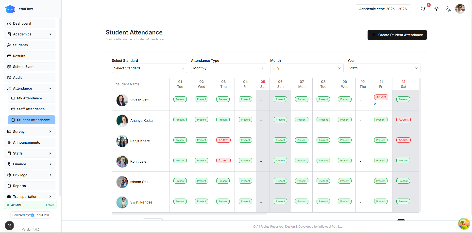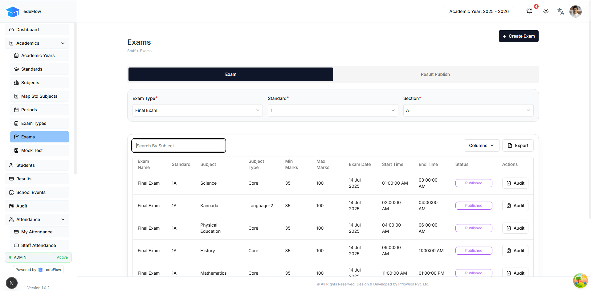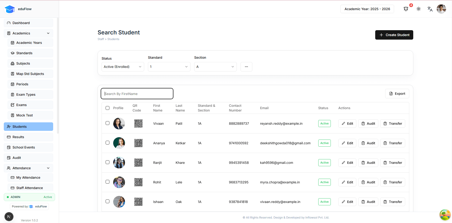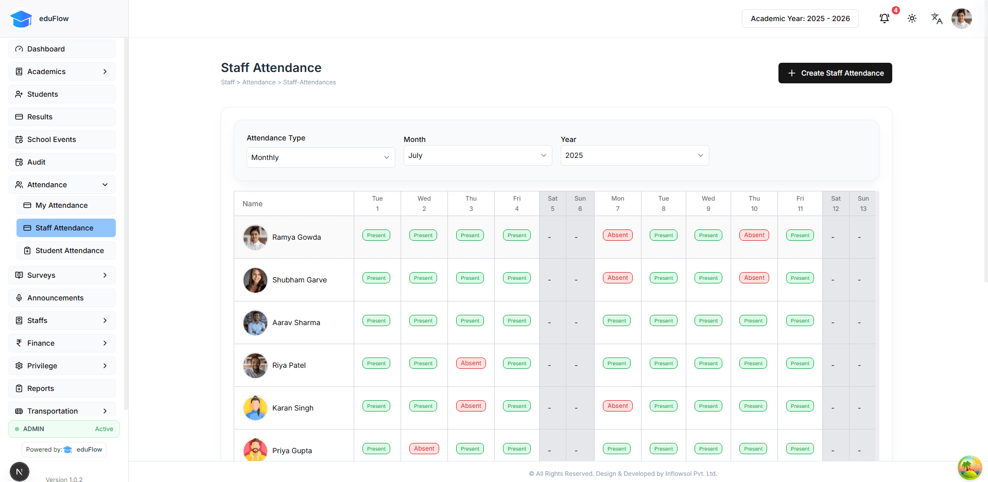 EduFlow is an all-in-one platform for schools — managing admissions, attendance, fees, and exams while keeping admins, teachers, and parents connected and organized.